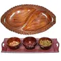 Handicrafts Designed Brown 2 Tray with 3 Bowls Wood Carvings