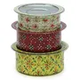 A set of three serving bowls with lid embossed and hand painted with minute details to bring charm in your dining experience.