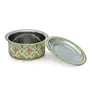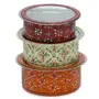 A set of three serving bowls with lid embossed and hand painted with minute details to bring charm in your dining experience.