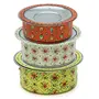 A set of three serving bowls with lid embossed and hand painted with minute details to bring charm in your dining experience.