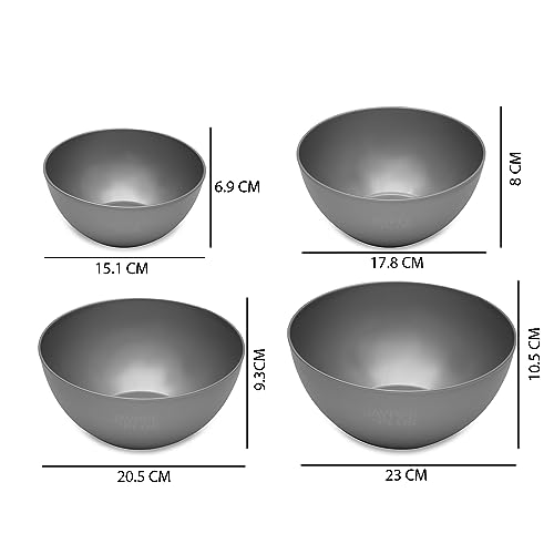 Jaypee Plus Virgin Plastic Mixing Bowl| Lightweight, Strong & Durable Bowls | Ideal for Serving, Storing & Stacking Set of 4 -(2800+2000+1200+800) ml (Grey)