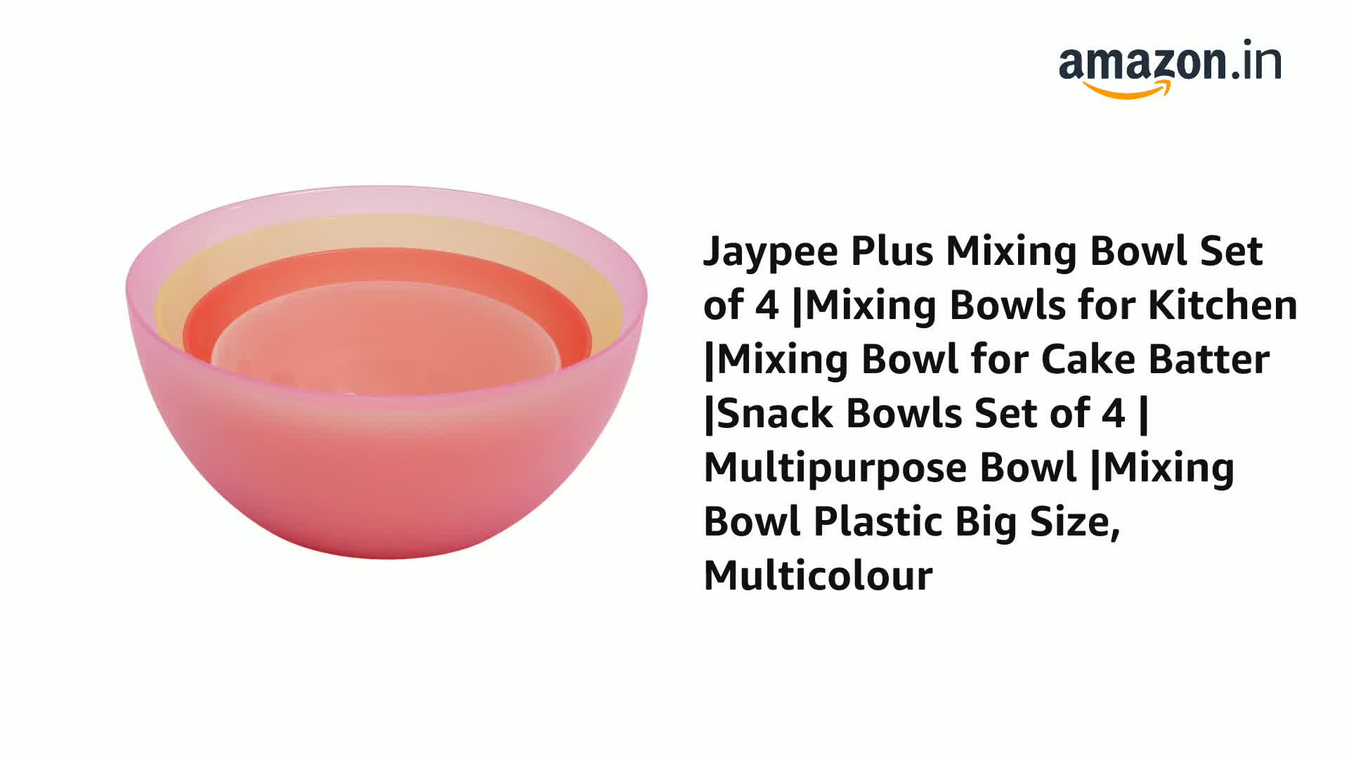 Jaypee Plus Mixing Bowl Set of 4 |Mixing Bowls for Kitchen |Mixing Bowl for Cake Batter |Snack Bowls Set of 4 | Multipurpose Bowl |Mixing Bowl Plastic Big Size, Multicolour