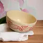 These KHURJA POTTERY ceramic round bowls are handmade and handpainted by Indian artisans. The top diameter of the bowl is 13.5cm the base diameter is 6cm and the height is 7.5cm. The capacity of each bowl is 450ml. As the bowl is handcrafted there may be a slight difference in color and finish or few pinholes may occur; however this does not change product quality in any way. These bowls are made of ceramic and so they are non-toxic non-reactive can retain heat for a long time and do not catch the flavor or color of the product put in them. They are also easy to clean and lasts for years. They are also dishwasher safe on the mild cycle. These ceramic bowls are also Lightweight Microwave Oven Freezer OTG safe and chip resistant. Large size of bowls makes them perfect for multipurpose uses. The ceramic bowls are perfect to bake or serve various food dishes like dal rice pasta curry/gravy salad noodles desserts snacks sauces or chutneys. The pastel color of the bowls makes them perfect for any setting and their stylish look also makes them a wonderful gift for your loved ones who are moving into their new home or love eating out of pretty bowls. They go perfect with a boho nordic or colorful house theme. Serve your breakfast lunch or dinner in style. The product's description and images are copyright of KHURJA POTTERY. It is a request that is not copied or altered. We promise to give you the best product and service. In case you have questions or problems with our product do not hesitate to contact our store. If you are interested to see more of our product range search "KHURJA POTTERY" in the search bar.