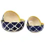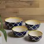 KHURJA POTTERY Ceramic Handcrafted Multipurpose Bowls 1000 ML 750 ML 500 ML and 350 ML Set of 4 (Blue & Yellow)