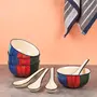 KHURJA POTTERY Ceramic Handpainted Serving Bowl with Spoon 300 MlSet of 4 Multi