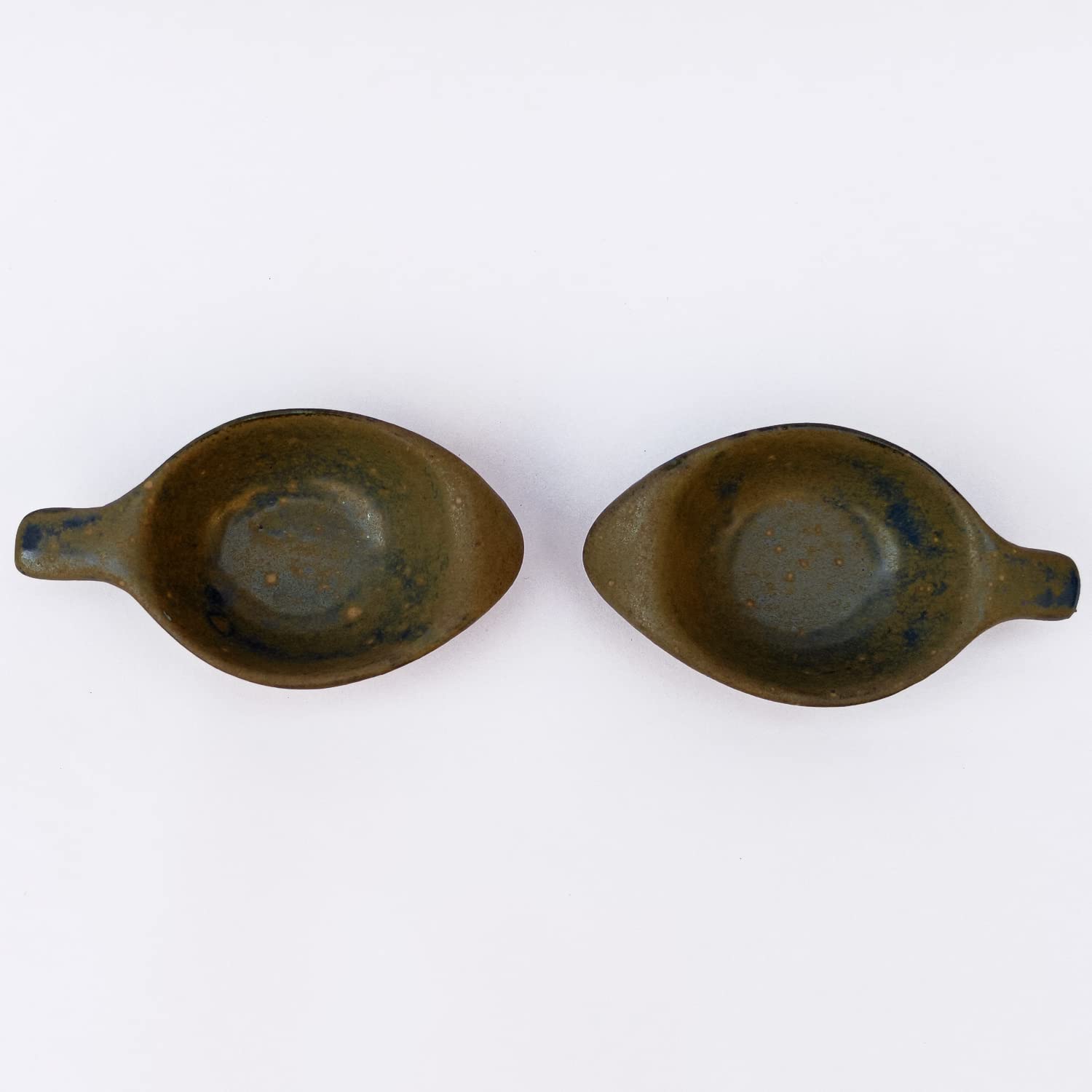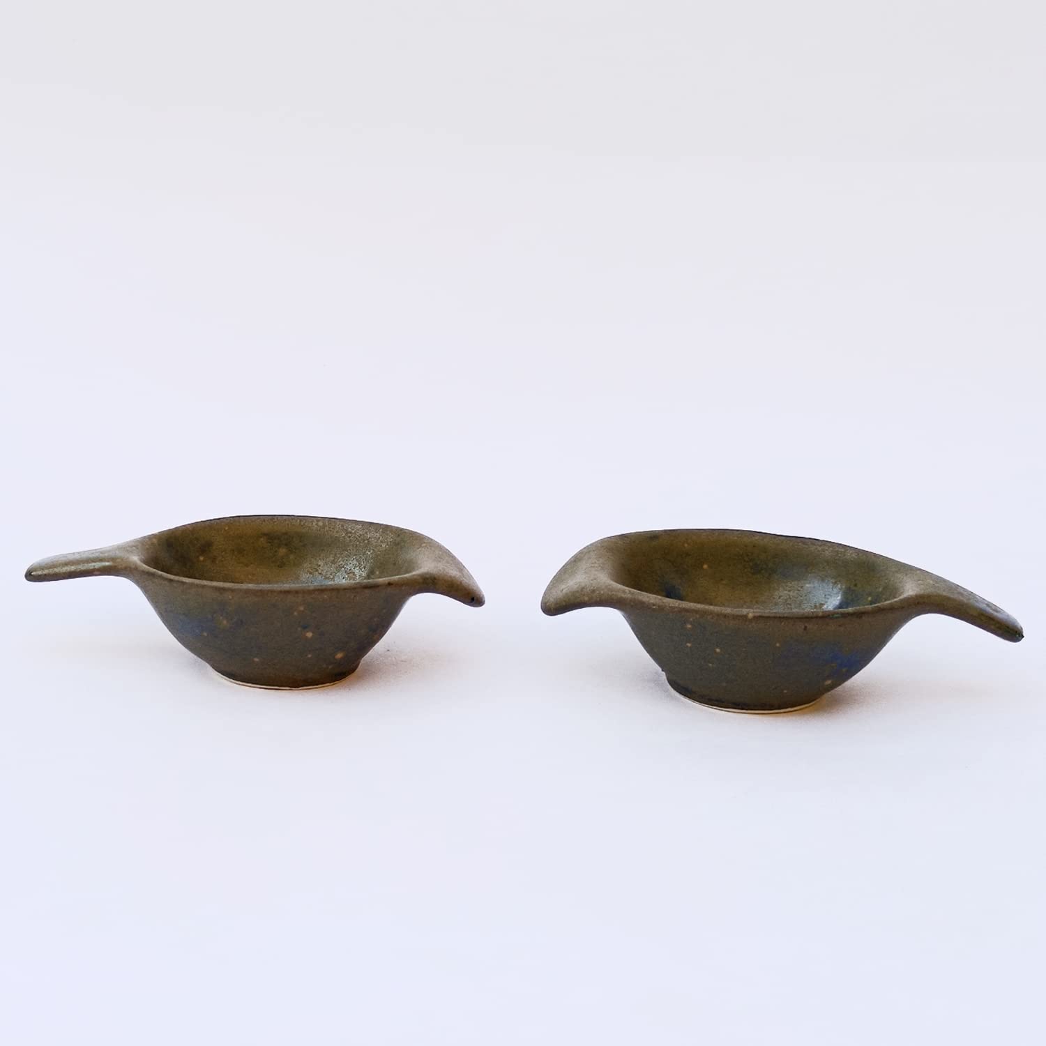 KHURJA POTTERY Chutney Sauce Pickle Aachar Ketchup Dip Serving Bowl Ceramic Hand Dual-Glazed Studio Pottery Ceramic Set (40 ML Small Set of 2 Brown) | Dip Bowl | Ketchup Bowls