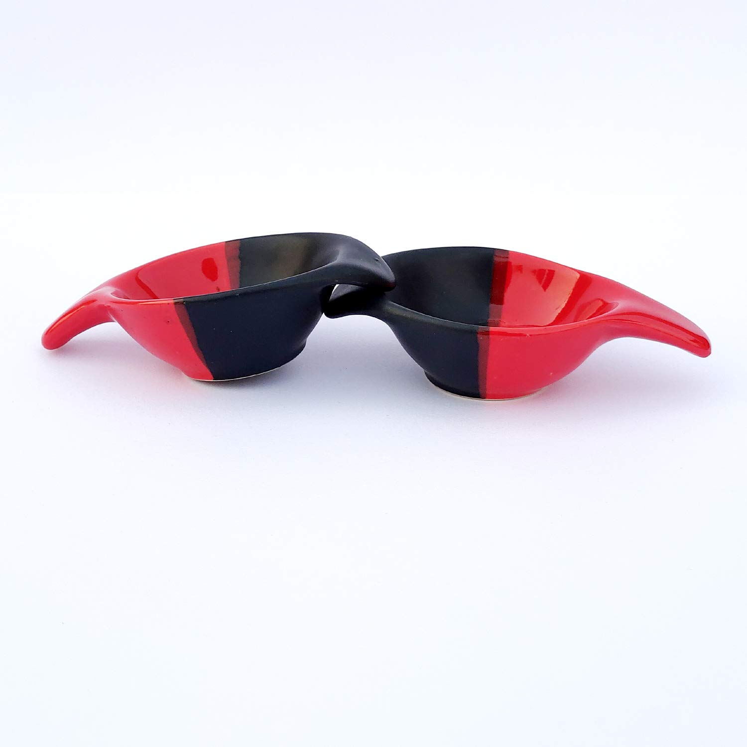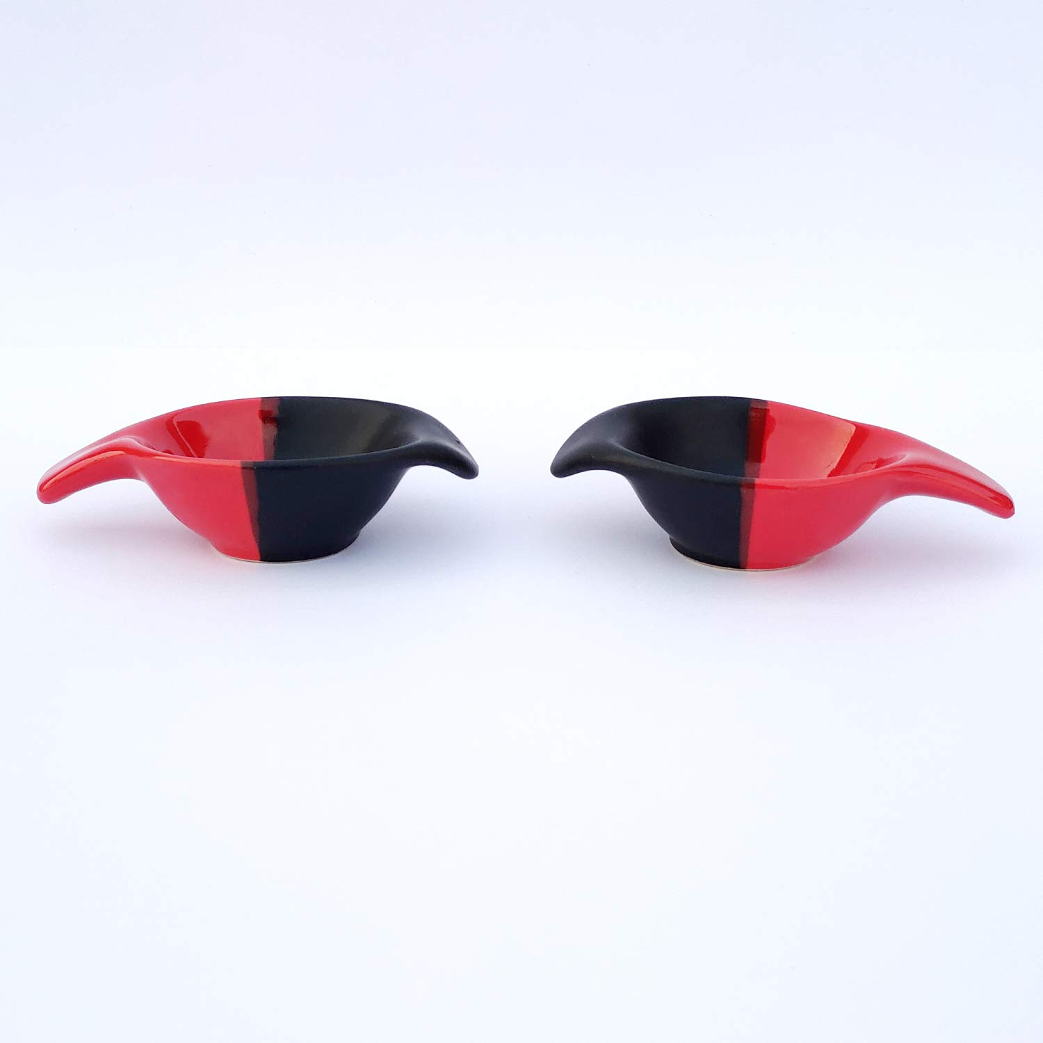 KHURJA POTTERY Chutney Sauce Pickle Aachar Ketchup Dip Serving Bowl Ceramic Hand Dual-Glazed Studio Pottery Ceramic Set (40 ML Small Set of 2 Red - Black) Microwave Safe - Dishwasher Safe.