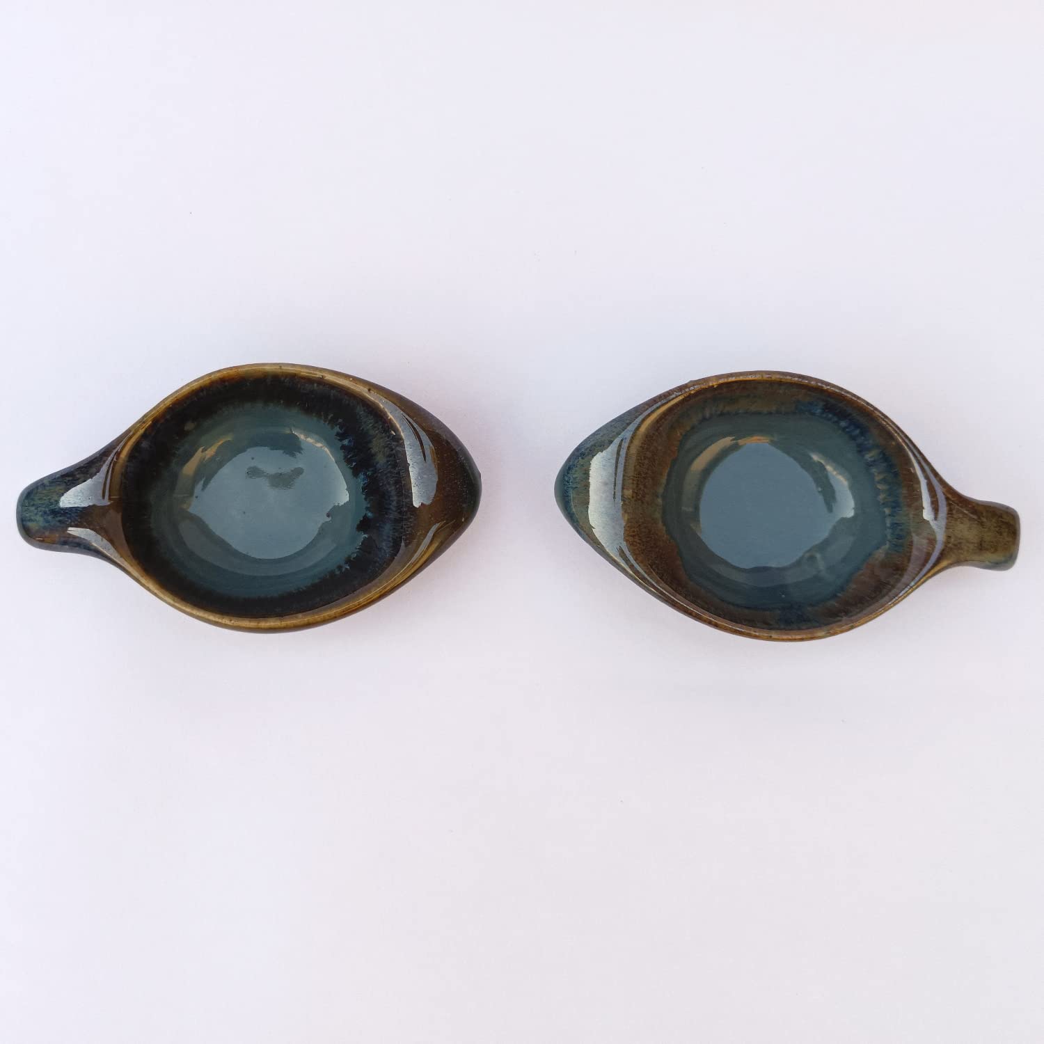 • PACKAGE DETAILS : 2 Ceramic Bowls ; DIMENSIONS : Length 11 cm Width - 7.1 cm Height 3 cm ; Volume - 20 ml each ; Weight : 162gm.