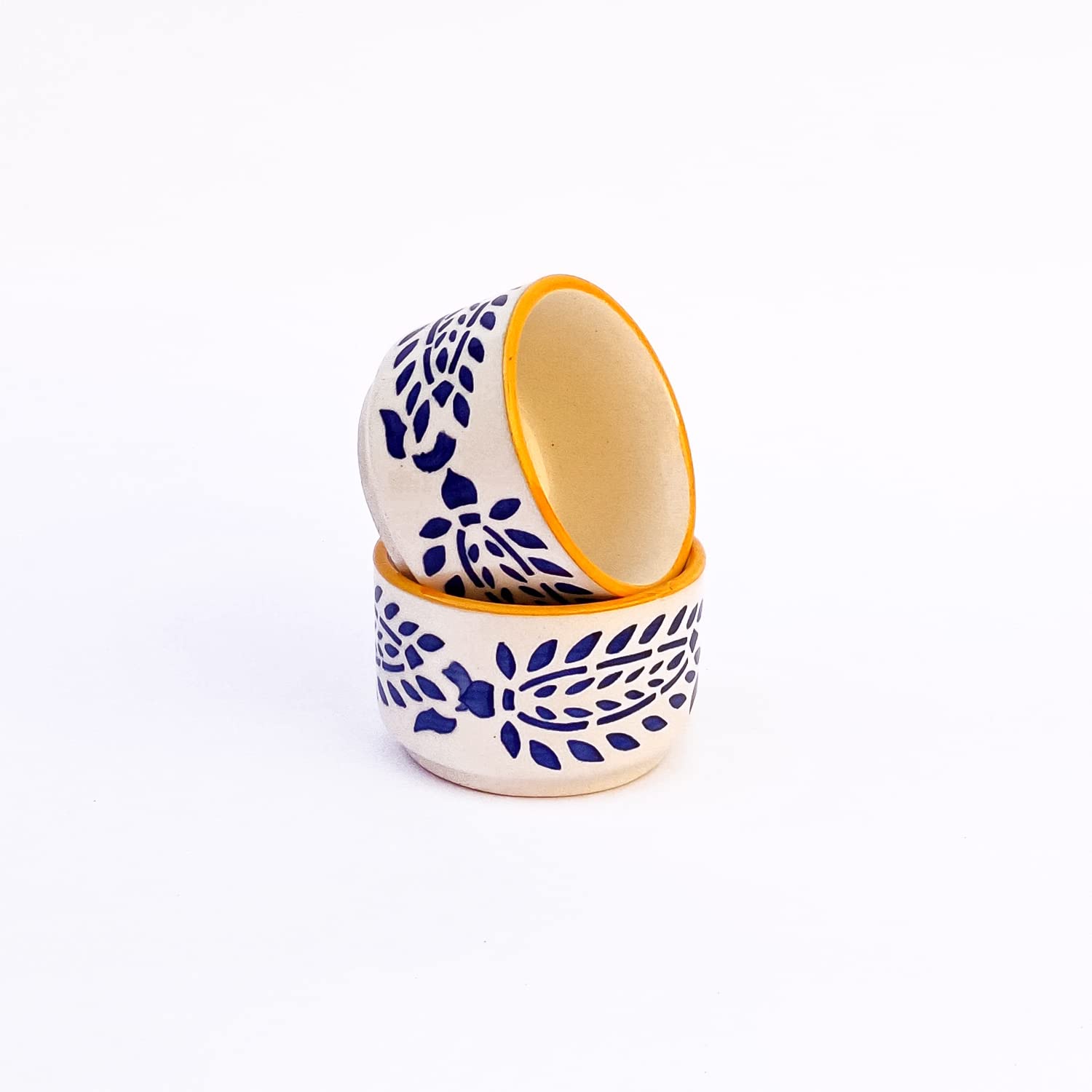 Made in India for an initiative of Aatam Nirbhar Bharat A Product with simple handle and detailed with Handpainted Glaze. Handmade and hand glazed with love from the interiors of India. They make the perfect addition to any kitchen and table spaces as art pieces displaying an exemplary glimpse of studio pottery from India. Those who love their food love their kitchen will definitely love this modern product. Best for serving casually or occasionally both at one on one tea time. Tip to bottom is 100% handmade with fine details. An ideal gift for housewarming party. Comes in a set of 2. The product is lead free. The product is dishwasher & microwave safe.