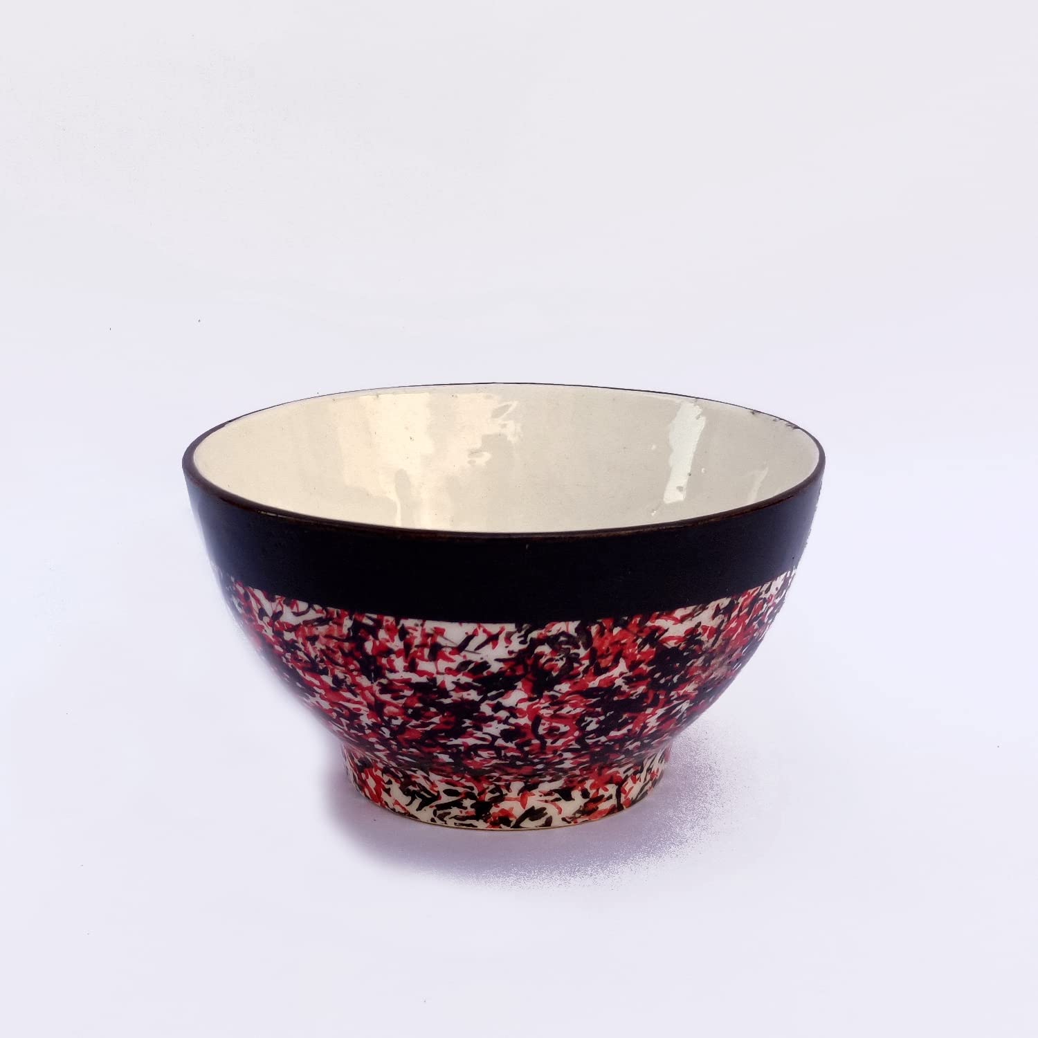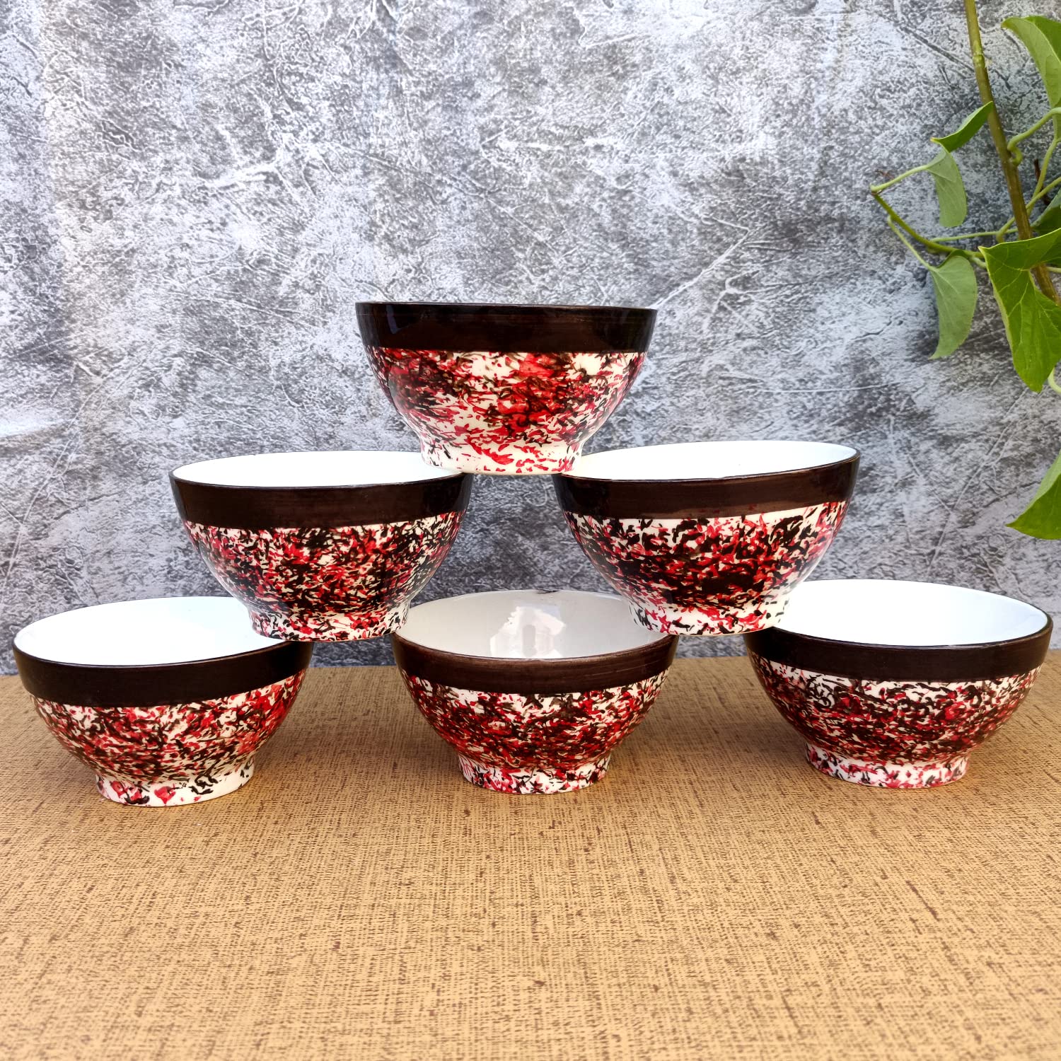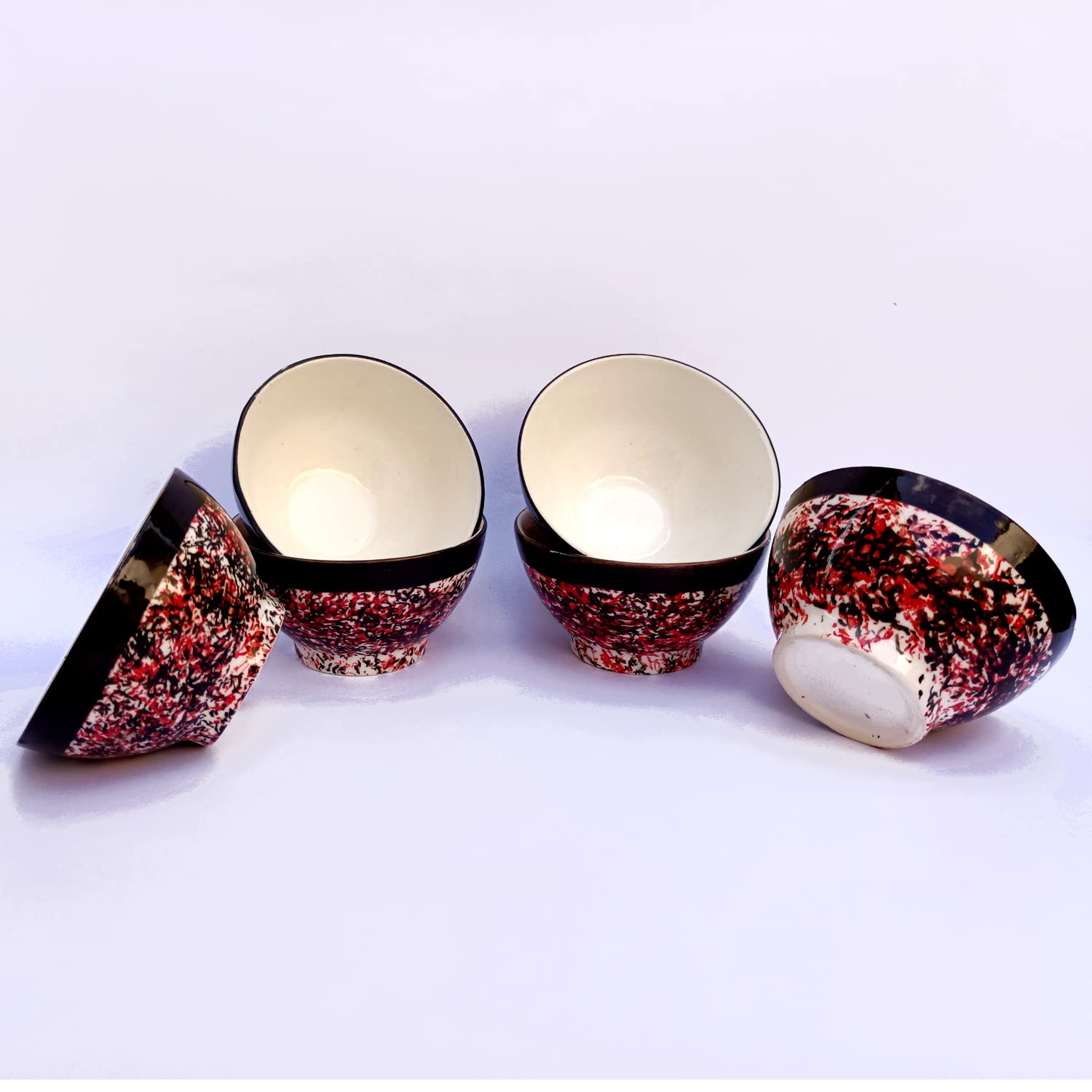 KHURJA POTTERY Dinner Vegetable Snacks Soup Cereal Daal Salad Dessert Serving Dining Bowls for Side Dishes Handpainted Ceramic (Red - Black Spray Set of 6 250ml Each) Microwave and Dishwasher Safe