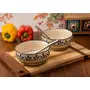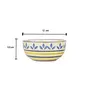 KHURJA POTTERY Hand Painted Ceramic Blue Leaf Striped Pattern Handled Soup Bowl Set of 2 with Spoon 300ML Cream