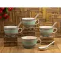 KHURJA POTTERY Hand Painted Sea Green Ceramic Handle Soup Bowl set of 4 300 ml