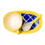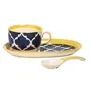 KHURJA POTTERY Handmade Ceramic Floral Soup Noodles Bowl Set with Tray & Spoon Blue and Yellow