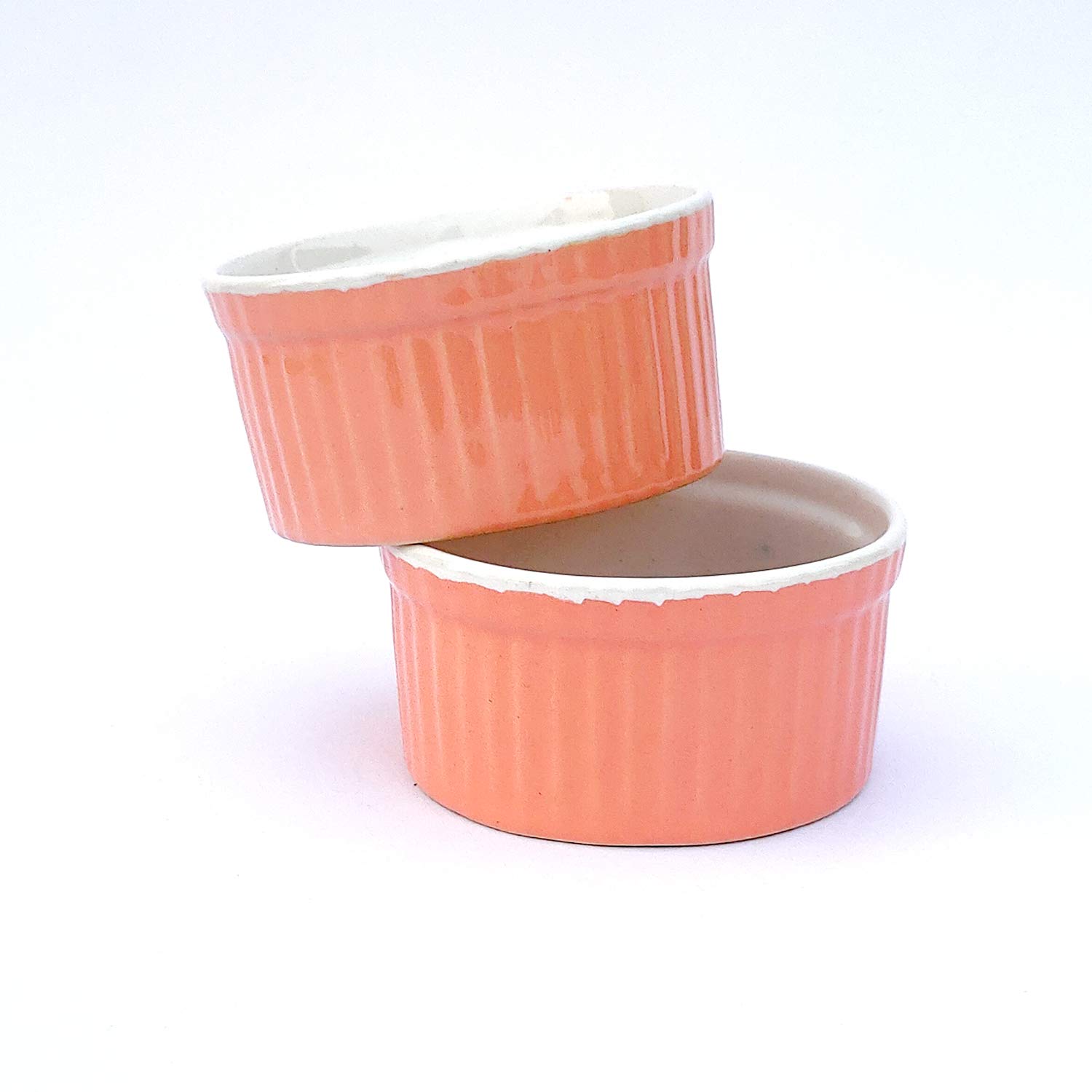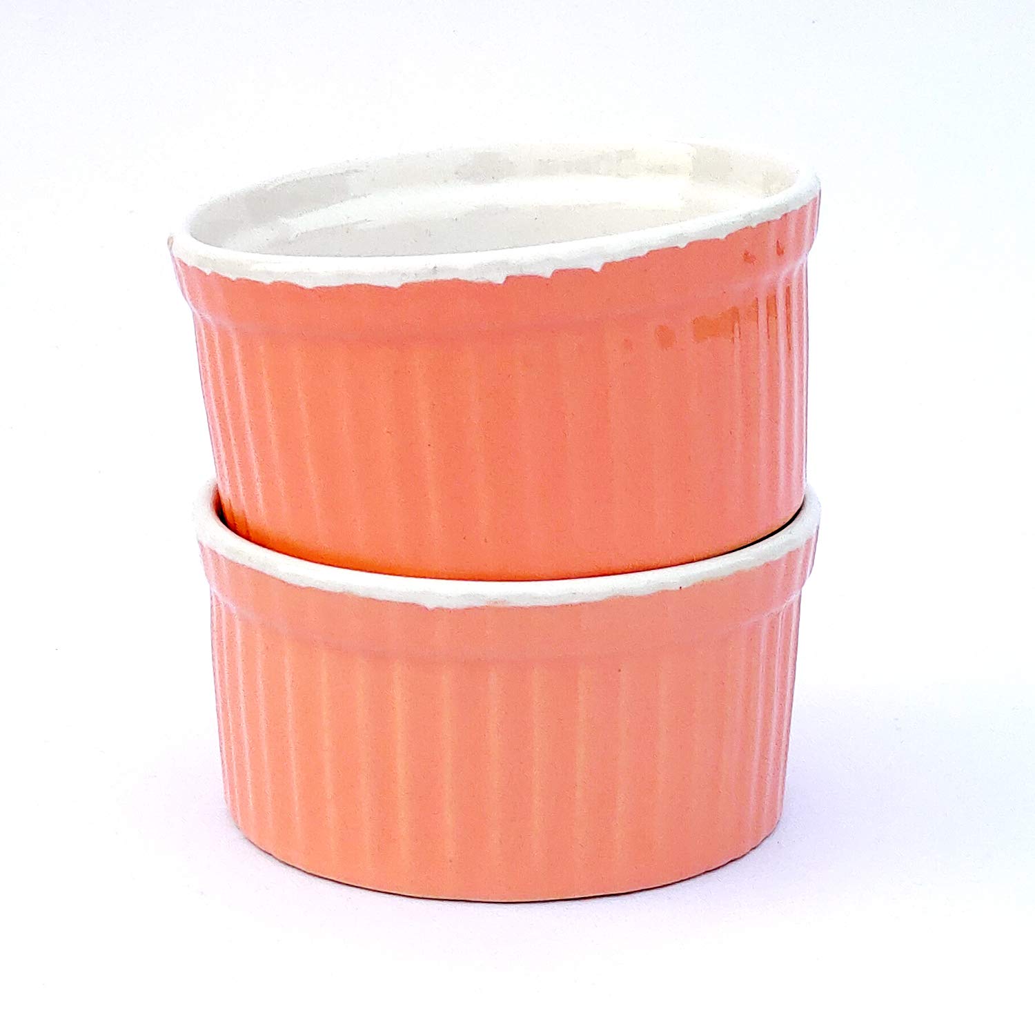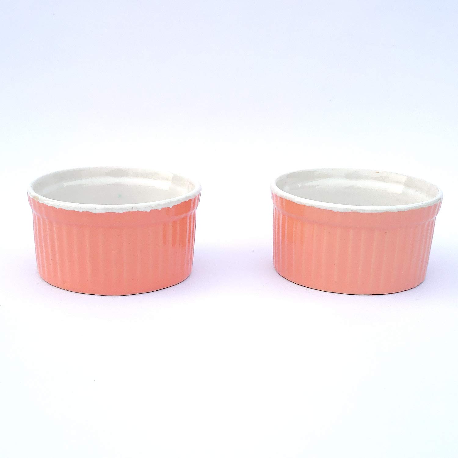 KHURJA POTTERY Ice-Cream Cake Dessert Dish Dip Sweets Katori Bowls Chutney Ketchup Studio Pottery Ceramic Bowls Set(Set of 2 Pink White) Microwave Safe - Dishwasher Safe