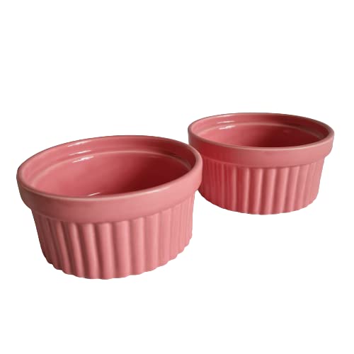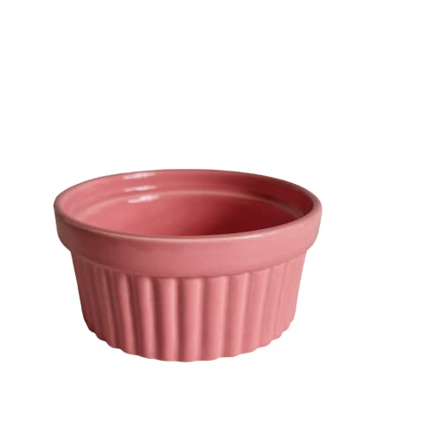 KHURJA POTTERY Pink Ramekin Bowl 200ml Set of 4 Microwave Convection & Dishwasher Safe for Snacks Cup Cake Dessert Souffle