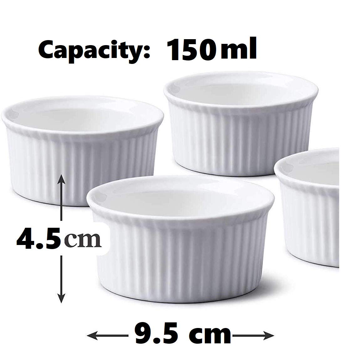 This set of 6 ramekins are perfect for microwave and dishwasher use. They can also be used in Oven OTG convection. The bowls are perfect baking cup or moulds and can be used to make cupcakes choco lava cake muffin creme brulee souffle dishes. The ramekin bowls are ideal for serving dips chutney salsas desserts dressings sauces appetizers and desserts dishes like cake gulab jamun halwa pudding ice creams. Never worry about harmful toxins leaching into your food. Safe to use around your family. These classic white porcelain ramekins go anywhere and look fantastic in any setting. You can serve food in them eat out of them and never worry about chips nicks cracks and scratches. Made from fine-quality it will give a beautiful Japanese and English look to your table. Gifting this beautiful set to your loved ones will make them remind you while enjoying their desserts. The ramekins are dishwasher safe. Each product is individually hand made by our craftsmen and a minor color change could be noticed. Use soft detergent to wash and avoid scratching with hard brushes to keep the shine last longer. The shades of Blue used in making these ramekin bowls are food safe. Araine is a premium brand of Fine Porcelain which offers wide range of products ranging from servers dinner sets mugs cups etc. It has established its presence in Indian market by offering wide range of designs/shapes all across the country. It not only provides the uniquness in designs and shapes but also adds the classy image to your kitchen.