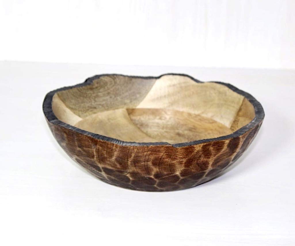 Handmade Wooden bowl is made of food-safe Sheesham wood and each bowl has unique and special wood drawing & patterns. The simple design is highlighted with a stylish polished finish to bring out the natural beauty of the wood. Its natural undertone and pleasing aesthetic will be a spectacular addition to your dining table or kitchenware. Its ideal for rustic kitchens and also in modern industrial style kitchens.