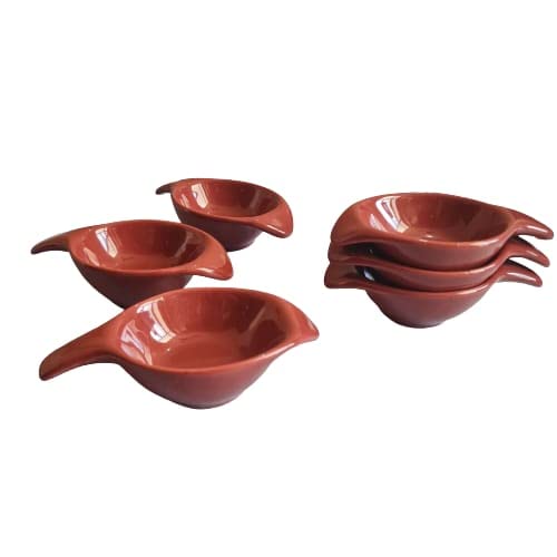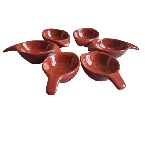 Dining accessories like this Ceramic Dip Sauce make superlative statements of their own. This is made of Fine Porcelain and will be an aesthetically appealing purchase without a doubt. Included in this collection is Set of 6 Spoon Shape Dip sauce Bowl Description -KHURJA POTTERY which offers wide range of products ranging from servers dinner sets mugs cups etc. It has established its presence in Indian market by offering wide range of designs/shapes all across the country. It not only provides the uniquness in designs and shapes but also adds the classy image to your kitchen.
