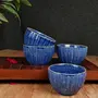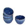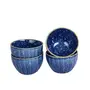 PRODUCT DESCRIPTION:Sprinkle some fun in your daily life with this set of 4 Ceramic dining bowls that will help you serve dal curries vegetables curd & even desserts to your guests and loved ones during main meals. These katoris come in a deep blue shade with a speckled & ridged texture and makeup as essential tableware & unique crockery gifts for special events.FEATURES:This handcrafted studio pottery katori set is ideal for serving dal curries vegetables raita or curd to your loved ones.These can also be used for eating desserts like gulab jamun rasgulla ice cream fruit cream kulfi etc.It comes with a ridged surface that is elegantly hand glazed in dark blue & sprinkled with lighter spots making it a masterpiece.Can be used to serve 4 people.NOTE:Please refer to the dimensions in the image.The bowls are Microwave Oven Freezer & Dishwasher safe.There may be a slight variation in the glazing color or finish of the bowls as the glazing is done inside the furnace at a very high temperature to make the product strong and sturdy.As the product is completely handcrafted there might be a slight difference in the shape & design.This product is not made of Bone China.CARE INSTRUCTIONS:Handle with care.Wash gently with a mild detergent.Do not use any abrasive susbtances while washing.