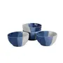 PRODUCT DESCRIPTION:With an exuberant shine and a modern touch this triple-toned hand glazed set of four dining bowl katoris will make you & your guests wonderstruck during mealtime. Specially curated in Ceramic for your mealtime these katoris are perfect for serving dal curries vegetables or curd or even desserts like gulab jamun rasgulla ice cream fruits cream kulfi etc.FEATURES:These triple-toned handcrafted studio pottery katoris are perfect for serving dal curries vegetables or curd during meal times.These can also be used for serving desserts like gulab jamun rasgulla ice cream fruits cream kulfi etc.Each katori comes with a smooth surface that is amazingly hand glazed whilst depicting three shades from white to dark blue.Use them regularly or gift them to your loved ones on a special occasion.NOTE:Please refer to the dimensions in the image.The bowls are Microwave Oven Freezer & Dishwasher safe.There may be a slight variation in the glazing color or finish of the bowls as the glazing is done inside the furnace at a very high temperature to make the product strong and sturdy.As the product is completely handcrafted there might be a slight difference in the shape & design.This product is not made of Bone China.CARE INSTRUCTIONS:Handle with care.Wash gently with a mild detergent.Do not use any abrasive susbtances while washing.