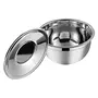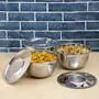 Kraft Stainless Steel Serving Bowl Set of 3 Pcs with Stainless Steel Lid / Cover Non Toxic Matt Finish BPA Free Comes with 2 Year Warranty - Silver
