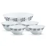 Larah by Borosil Floret Fluted Series Opalware 5 Pcs Pudding Set | Microwave & Dishwasher Safe | Bone-Ash Free | Crockery Set For Dining & Gifting | Bowls Set | White