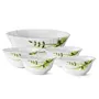 The set is beautiful! The packaging was not up to the mark but nothing was broken or with any bump. I meant to give it as a gift so had to redo the packing properly before giving away.It has 4 pudding cups and 1 big bowl. The design is nice and the overall quality impressive.Worth the cost and makes for a nice gift!