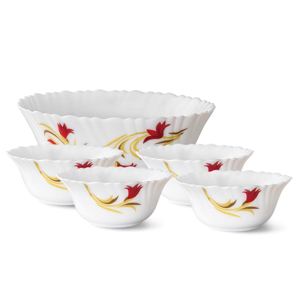 Larah by BOROSIL Opalware Floral Pudding Set - White