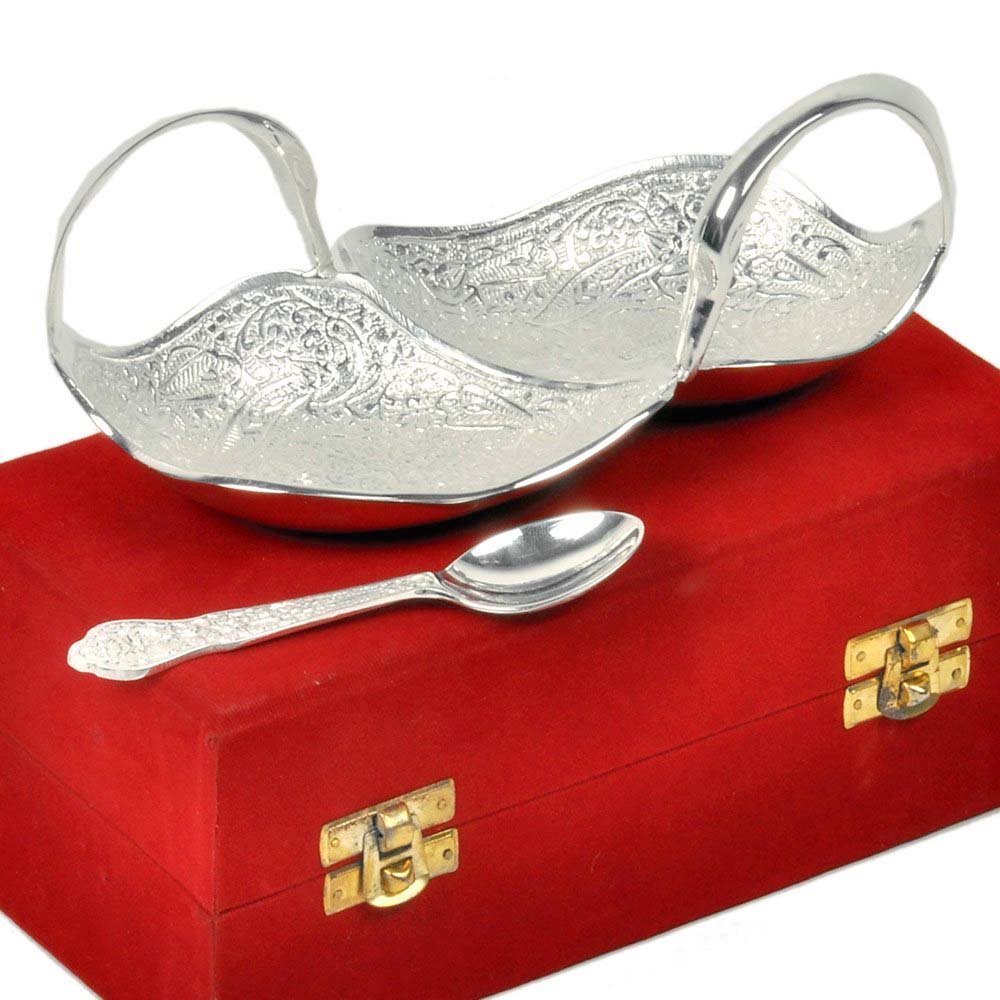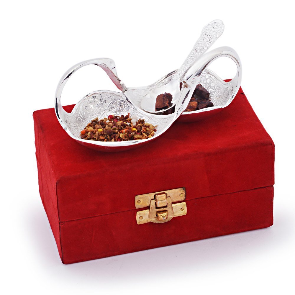 This silver polished duck shaped mouth freshener bowl set comes with a spoon. Made up of pure brass it is beautifully carved on the surface. Gift it or use it it is sure to be admired by all. The gift piece is prepared by master artisans of jaipur.