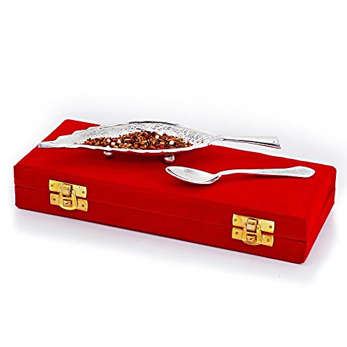 This silver polished leaf shaped mouth freshener bowl set comes with a spoon. Made up of pure brass it is beautifully carved on the surface. Gift it or use it it is sure to be admired by all. The gift piece is prepared by master artisans of jaipur.