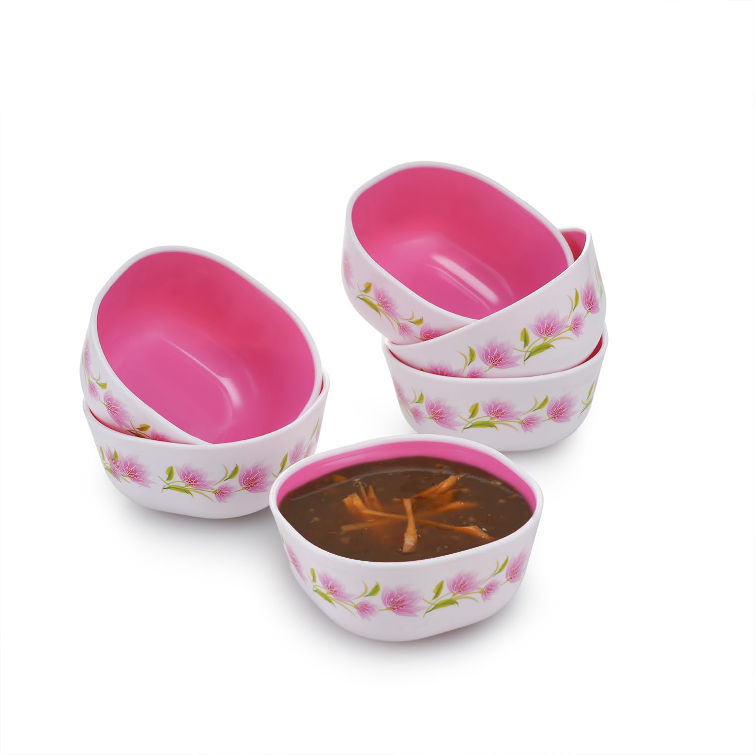 Nayasa Square soup serving Bowls have unique square pattern with attractive Prints on it. One set has 6 Bowls. These Bowls are Microwave safe and are ideal for serving soups and Desserts. Colors available in stock at the time of shipment will be shipped.