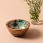 Serving Bowls Wooden for Snacks Dry Fruits | Printed Wooden Decorative Potpourri Bowls for Gifting| Mango Wood with Decaling Print with Clear Enamel | Green Floral Print 6 Inches Diameter