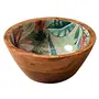 Serving Snacks Bowls wooden for dry fruits | printed decorative Wooden potpourri dessert bowls | Mango wood with Decaling print with clear Enamel Design| Green floral print 6 Inches diameter