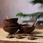 SIKKI CRAFT Coconut Shell Bowls and Spoons Plastic Free Bowls for Desserts Salad Fruits Rice Snacks Eco Friendly Durable Food Safe Breakfast Bowls for Smoothie (Set of 6 Brown)