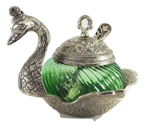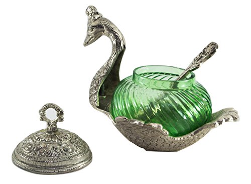 Beauty with Grace..!! Let the elegance of swan adorn your home. This master piece one and only is a must. Serve refreshments or salted snacks and surprise your guests.Its real beauty is in detailed design carved by expert artisans giving it an ethnic and unique look. It has a unique antique silver finish adding to its royal look. Comes with one small serving spoon.