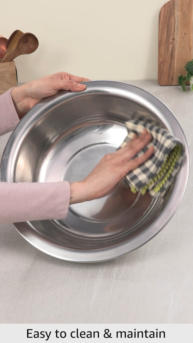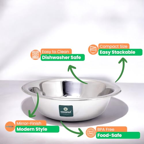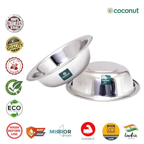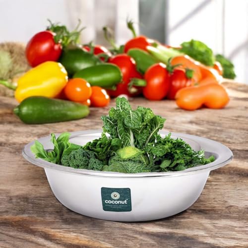 Coconut is a range of innovative and quality products for Home and Kitchen. This Basin Multipurpose Bowl is made from 22 Guage Stainless Steel Material. It's a Food Grade which will not react to the food. This is Easy to clean and maintain. This Multipurpose Basin is an essential product for kitchenware collections. This is ideally used to make Chapati Poori Parota Vegetables etc. It can also be used as a Food Serving /Food Storage in all the occasions and functions at Home. This Basin is usually used in HotelsTemplesParty Halls Etc. Product Content: SS Basin 22 Guage - 1 Quantity - Size -17 Dimensions - Width - 14 Inches & Height - 4.5 Inches.