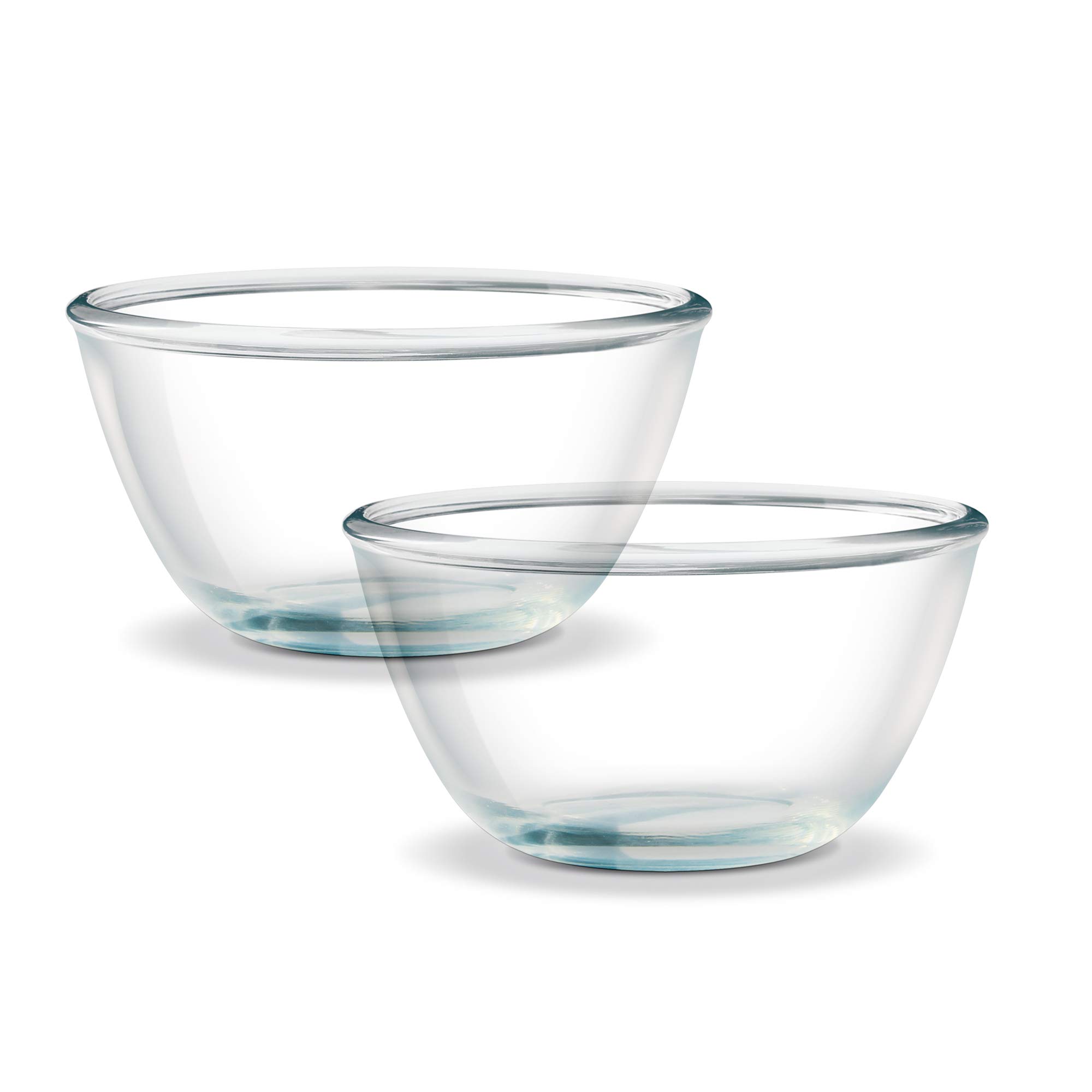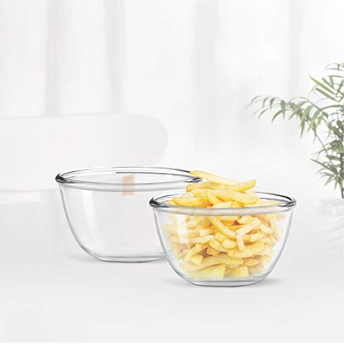 Mix anything from cake batter to salads to eggs to sauces and everything in between these versatile borosilicate bowls will quickly become your go-to food prep dishes! Because they are borosilicate glass they will not leech unhealthy chemicals into your food and they will not stain or absorb odors. It's Ideal for cooking Cake Pasta Vegetables etc.