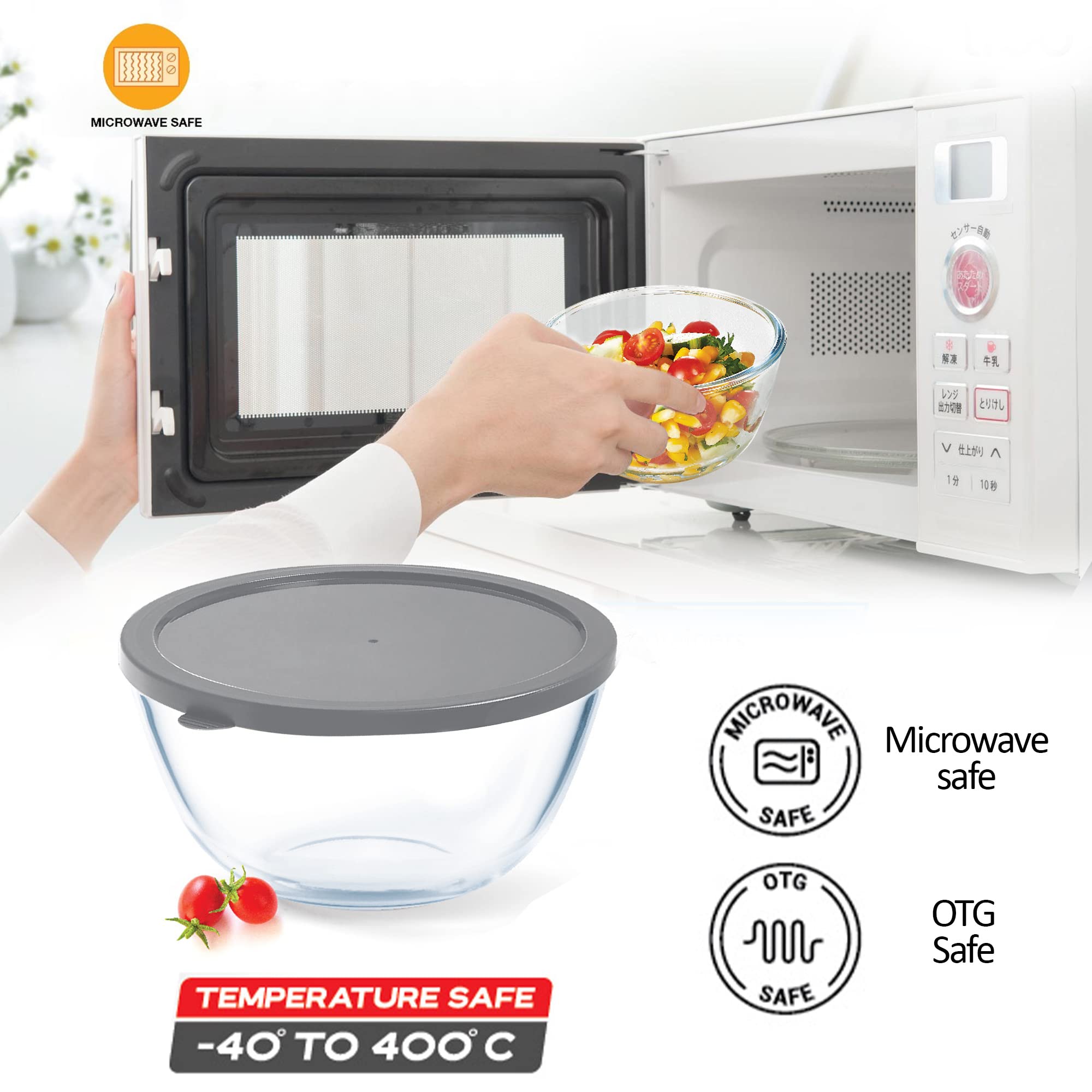 Introducing Treo By Milton OVENSAFE Mixing Bowl it is made of high grade Borosilicate glass which take care of all properties like thermal shock resistance. OVENSAFE products are providing happy moments for one or other by Baking Roasting Serving things which are of not routine but interesting like Cake Pizza Khaman and more. Even if cold food is offered by reheating in OVENSAFE Mixing Bowl it brings happiness on the face of person who will serve and who will eat the foods. It mostly become companion of the family celebration if there is any Birthday Anniversary any celebrating occasions. These happy moments are shared by all however children express it more. Temperature safe for - 40 to + 400 degree Celsius. It is Microwave Safe OTG Safe Freezer Safe Dishwasher Safe. Quick lid of mixing bowl is not to be put in OTG. While using mixing bowl in microwave keep quick lid loose open.