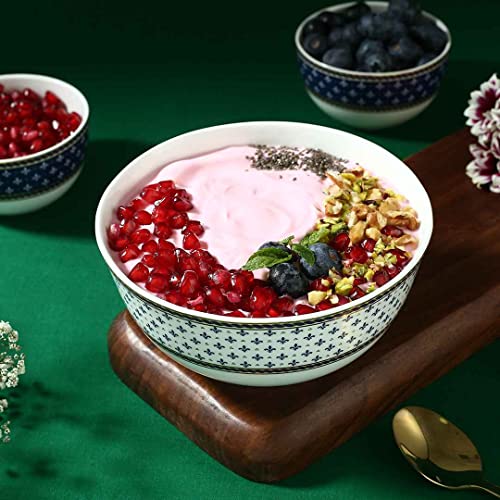 Inspired from the pristine shores of Sicilia Wonderchef presents to you their premium fine bone china dinnerware range - Sicilia. Like the clear water & luxurious lifestyle of the southern Italian coast this range is an ode to your opulent lifestyle. The Sicilia Royal Blue collection is the perfect balance of traditional design thought with a contemporary outlook. This collection has rich royal blue colour with real gold accents. Each piece of this collection portrays the artisan’s eye for detailing. The touch of gold rim around the motif makes it a coveted piece. They undergo three stages of firing and stringent quality check to attain the finish. The colours and gold used are food safe. Match it with its complementary pieces (sold separately) to curate a lavish dinnerware set also perfect for gifting. Crafted sleekly with a glistening finish this serving bowl from Sicilia collection is pristine and sturdy which makes it befitting for long term usage. Lovely in its own way this bowl will bring home your very own fine dining experience! Match it with a side plate and dinner plate to create your own set. The bowl is as versatile as it can get use it to serve portions of lentils curries or even desserts!