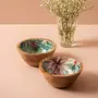 Wooden Bowl for Snacks Desserts Dry Fruits | Printed Decorative Potpourri Bowls | Mango Wood with Decaling Print with Clear Enamel | Green Floral Print 6 Inches Diameter Set of 2