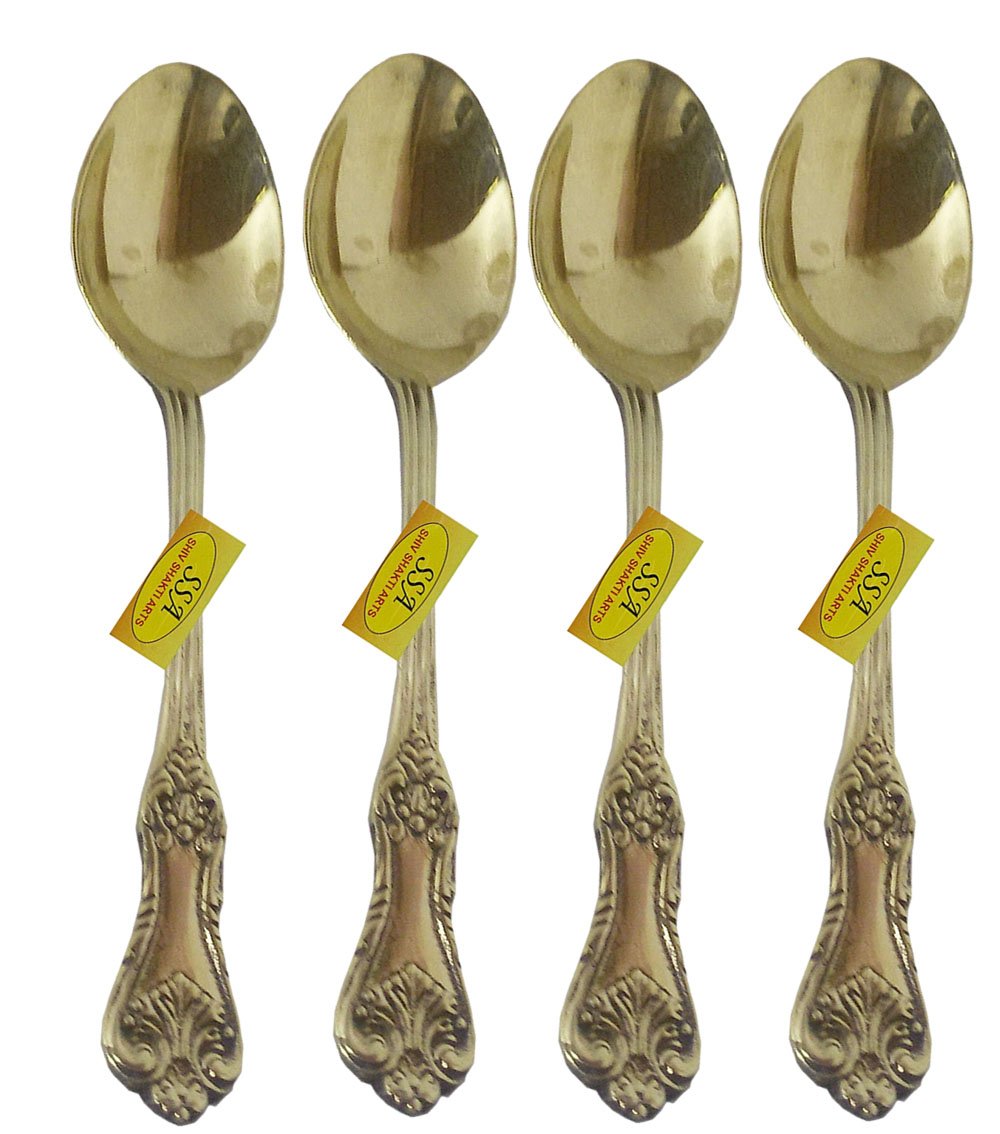 SHIV SHAKTI ARTS Handmade Pure Brass 4 Designer King Spoon Set