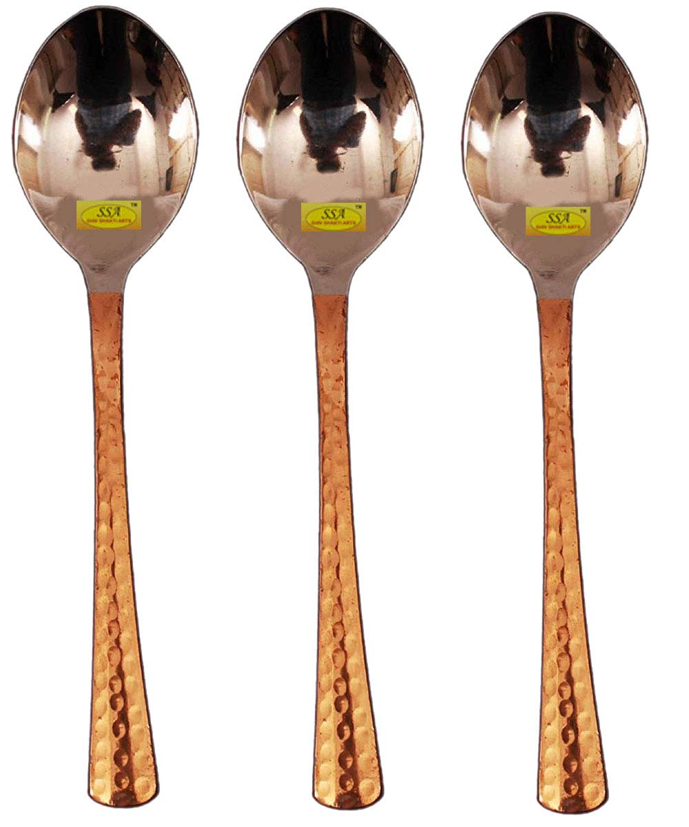SHIV SHAKTI ARTS Handmade Pure Steel Copper Spoon Dessert Spoon Dining Spoon Hammered Designed Homeware Hotelware::Set of 3