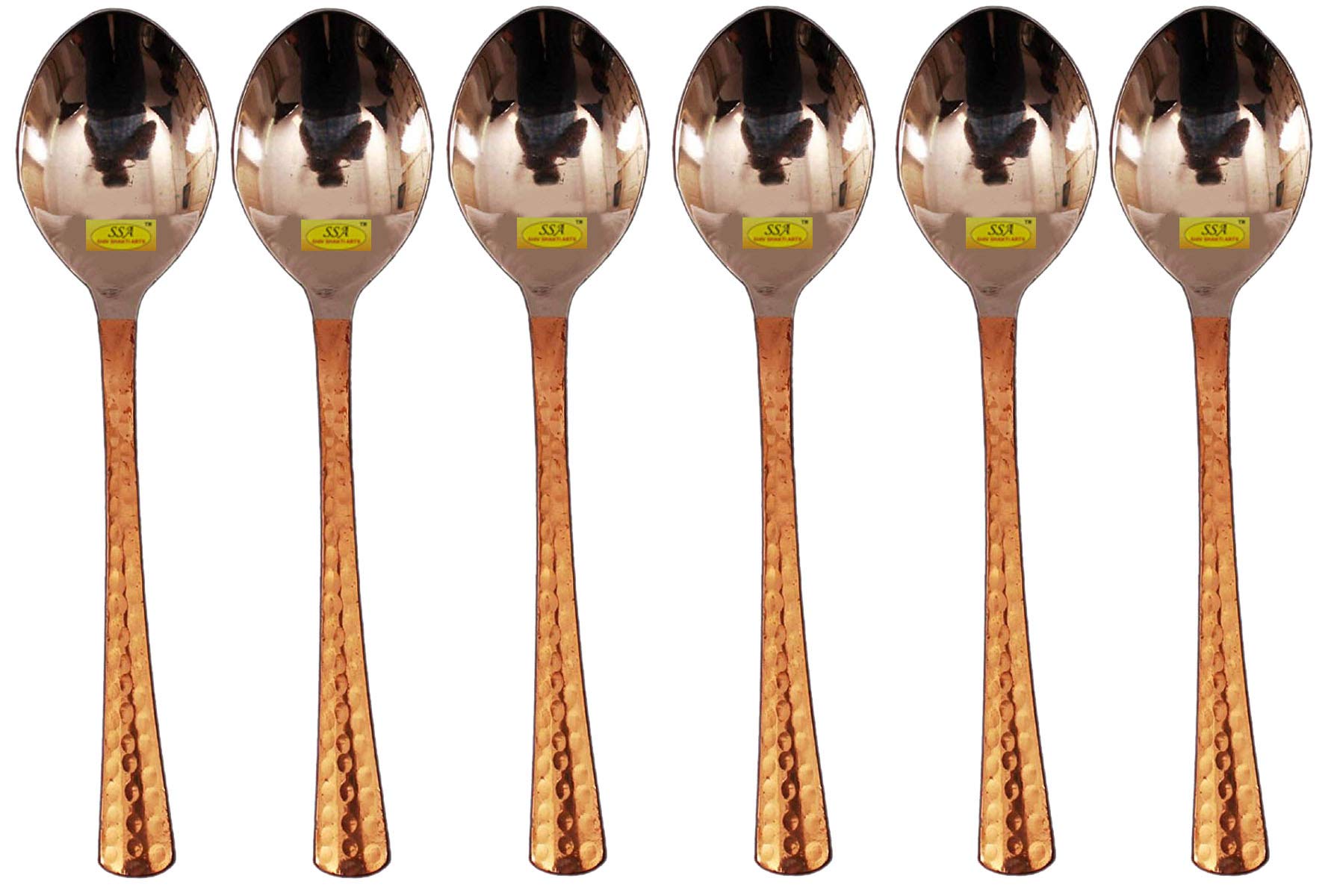 SHIV SHAKTI ARTS Handmade Pure Steel Copper Spoon Dessert Spoon Dining Spoon Hammered Designed Homeware Hotelware::Set of 6