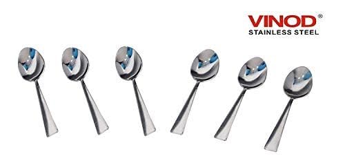 Vinod Stainless Steel Dessert Spoon Set- Pack of 6 (Big Size, Length - 7 inches) Useful for Liquids and soups