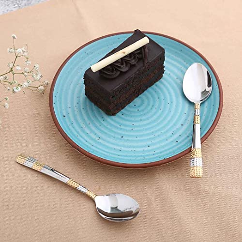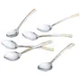Bring elegance to your dining table with Wonderchef's premium cutlery collection Roma. A dinner table only looks complete with exquisite cutlery that complements your table setting. Our Roma Cutlery gold plated range is an example of using gold metallic opulence coupled with an absolutely stainless steel body giving a touch of elegance. Made by high-quality electroplating this stainless steel cutlery range redefines luxury. It is a perfect addition to the family table for special parties and gatherings. Complete your dinner setting with this set of 6 dinner spoons. Our collection is also dishwasher friendly.
