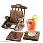 WOOD CRAFTS OF RAJASTHAN Wooden Antique Miniature Chair Shape TeaCoffeeDrink hot/Cold Coaster Set with 6 Coaster for Kitchen/Dining Table/Office/Restaurant.