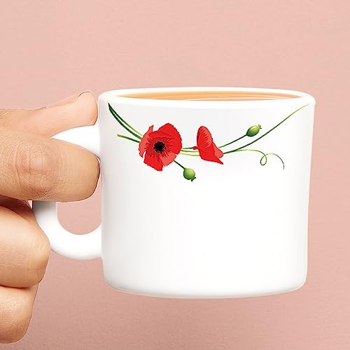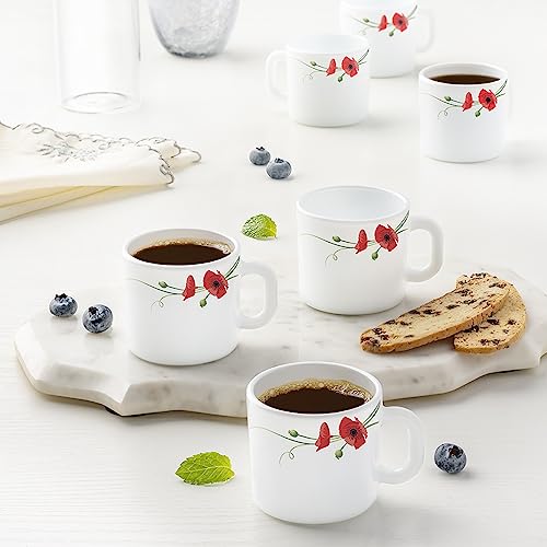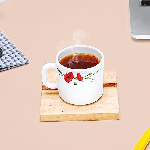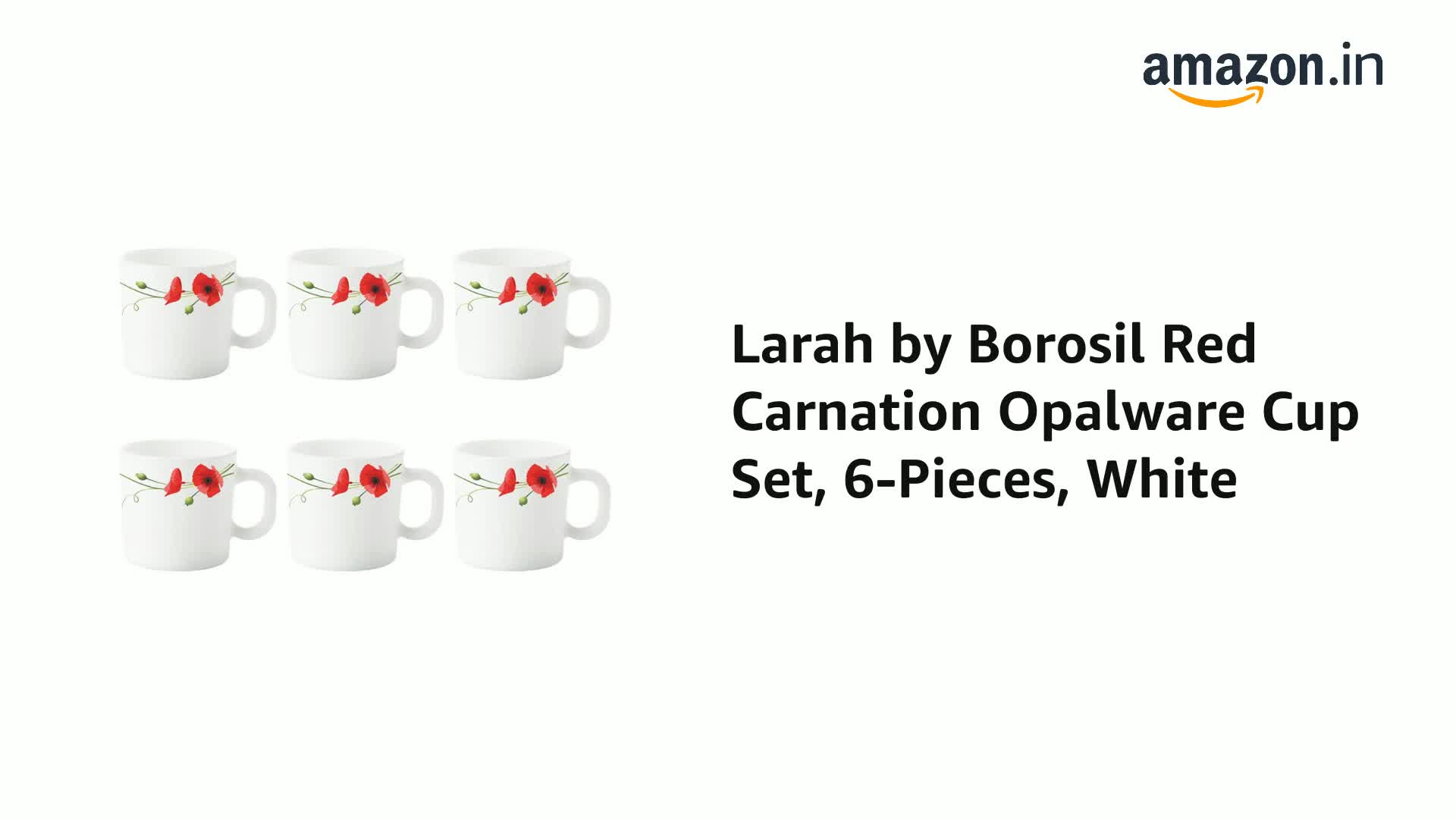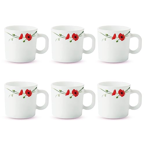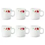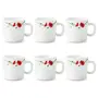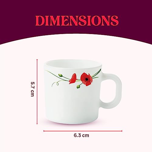 Larah by Borosil Red Carnation Opalware Cup Set, 6 Pieces, White