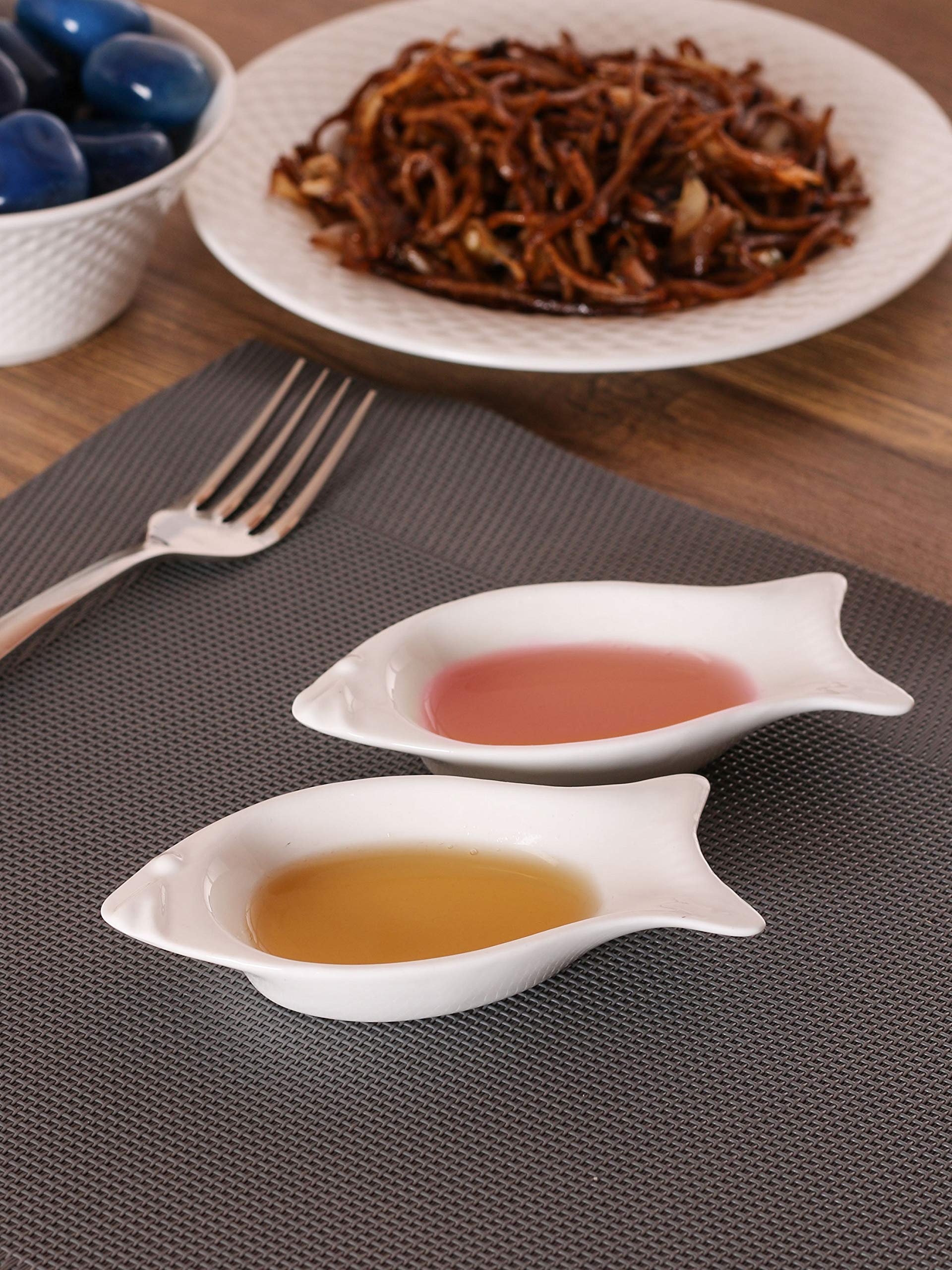 The dishes have a fish shape beautiful and very modern looking. They will be a great addition to your kitchen.