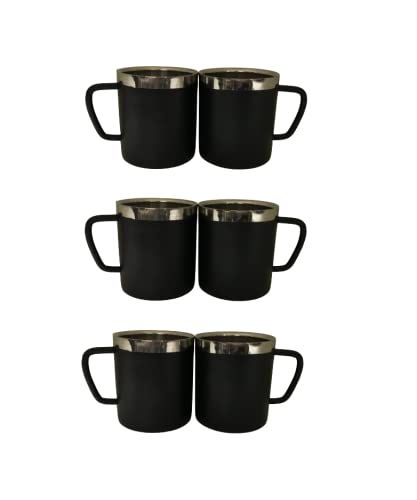 Finished black matte look double wall and easily holdcups for tea and coffee, 100% Food grade stainless steel, BPA free, toxin free and dishwasher safe, Heavy weight cups easy to carry and use for small utility and gatherings, Stylish finish look, specially crafted to enhance the look of your kitchen, Ideal for daily use in home, office, workplace, canteen, shop and etc Set of 6 Color- Black, Capacity- 180 ml