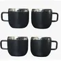 Dynore Stainless Steel Double Wall Black Matte Apple Tea Cups- Set of 4